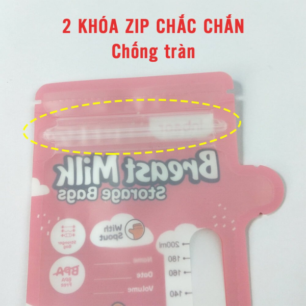 + 2 khóa zip chắc chắn, túi đựng sữa mẹ chống đổ, chống trào